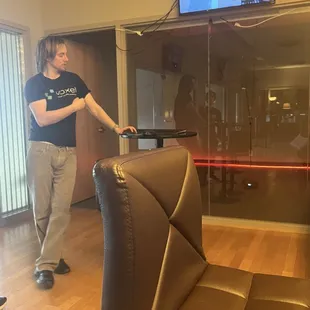 I took my partner here for his birthday and we had an absolute blast.First thing I want to do is give Kevin a huge shoutout. From the moment we walked in he was AWESOME and helped us have the best experience we could have had. We were the first ones there and it was my partners first time trying any VR. We are adults and love gaming so it was the perfect thing to do for us. We had our own semi-private stall and Kevin helped us get familiar with the mechanics of not only the VR headset and controller equipment but also the little differences in each game that we played. He made himself available consistently throughout our time there and we all had a good time together. We ended up staying longer (nearly doubling our original time) because it was so fun.At one point we got a little hungry so I ran down to get some pizzas from the Brick Oven Bus, a food truck that parks right outside the brewery in the parking lot of the building. We brought up the pizzas and some drinks and spent our afternoon immersed in the coolest technology. It's really a trip, highly recommend. There were games for everyone, all different ability levels and easy to switch in and out of games.The only hold up for us was it was a little bit difficult to get in and out of the building. We had to call up to be let in the locked door and then it's kind of a weird, big, empty building. It was, however, the Sunday after Xmas and could have just been our odd hours of visit.We will definitely be back to play again! Thanks Kevin!