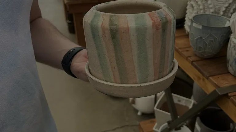 Tan pot display.