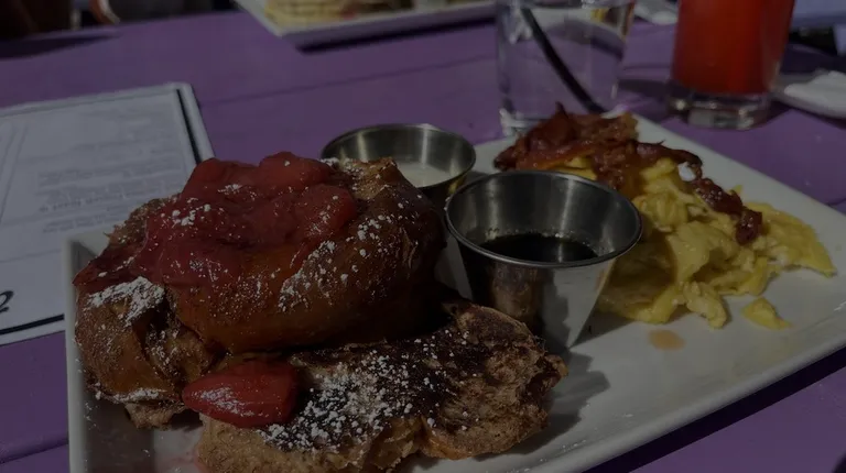 First time at this restaurant! I went for breakfast. There is a great selection for breakfast. The service was excellent & very attentive. The vibe at this restaurant is 100%. There was a dj playing absolutely great music- the crowd was amazing and just a great feeling! Definitely will want to return to have a drink - they have a full bar and great looking drinks !