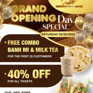 First time here and it did not disappoint. Thai tea, brown sugar milk tea and grilled pork Banh MiService was so friendly and drive thru was fast! So fresh and yummy.