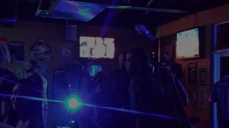 a man standing in front of a bar