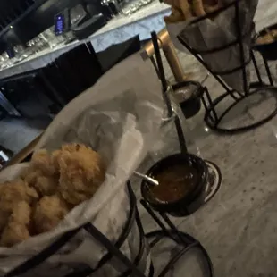Brand New Hidden Gem in the Stone Oak area full of upscale Whiskey & Cigars. I'm not a Cigar smoker but a few friends are. I do appreciate that there was no smoking inside. Service was fast with a smile. The Ambience reminded me of a sexy man cave. Dark, cozy and the vibe was super chill. Limited seating so be prepared for the possibility of standing a bit. The Food we ordered was some small bites (chicken tenders & fries). Portion size was perfect for my friend & I to share. The fries were hot, crispy & fresh. The tenders however were a bit bland. 4 sauce options came with it, I let the waiter select & they were all tasty. I got to try a few new Whiskey options; again I allowed the bartender to recommend. He did a great job & Ill def back to try more.