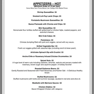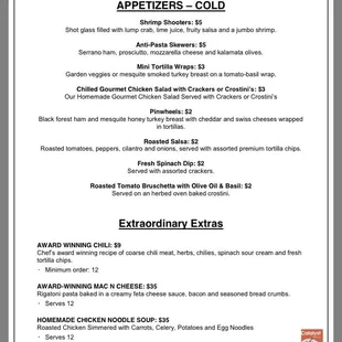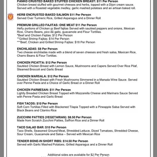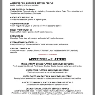 Catering menu