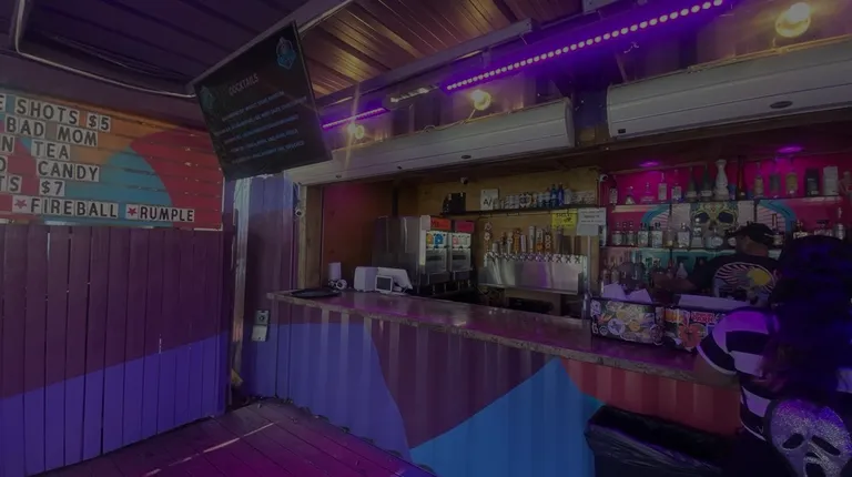 Pricey drinks for the location and what you get. The frozen drinks - maybe they were "slushies"? Not the friendliest barkeeps.