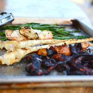 Paleo!! Lime and ginger Shrimp, Grilled Vegetables and Cauliflower rice.