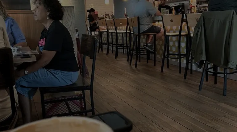 Yesterday was my first time at this place and it has such a good vibe! The front lobby was really nice & we didn't have to wait we were seated right away (mind you we came around 12pm). Our waitress was a sweetie pie, she noticed my child nagging so she took a pretend order for her which helped my child settle down. Food was amazing! I highly suggest the cinnamon swirl pancake I can't believe my child ate a whole one on her own!! Restrooms are a little strange and got locked inside because the lock is kinda hard but eventually I got out hahaha! The only thing I wish was that the outside of the restroom doors had a vacant sign or something to let you know someone is in there because I was going door to door knocking. Other than that I would say everything was fantastic!