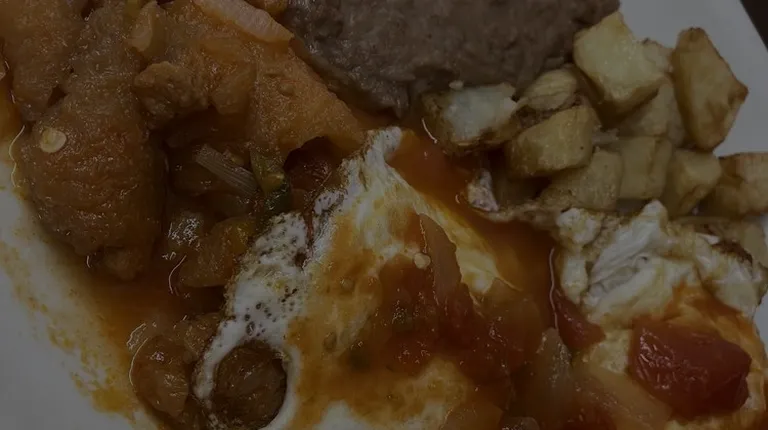 Taco al pastor and huevos con papas