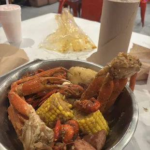 I ordered 1 lb of snow crab, 1lb of shrimp, 1lb of crawfish, 4 corns and 4 potatoes. I got this