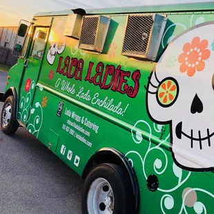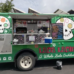 This is one of my favorite food trucks! These ladies really get it right. They come to our neighborhood often and there are always people lined up and ready! It's totally worth it. It was also nice to be outside the truck and chatting with neighbors. I've eaten everything they have but my fav is the chicken enchiladas. My son absolutely loves the Lada wrap. The cream sauce they use is thick and flavorful. The chicken is fresh, shredded white meat. It's delicious! Rice and beans are cooked well and tasted great. Ohhhh and the queso! OMG. The queso is creamy and you won't be able to stop eating it. These ladies are also friendly and fun. They even put up with my husbands silly jokes. (Sadly, we ate before I got pics - sorry! But go see Lada Ladies. You'll be glad you did!)