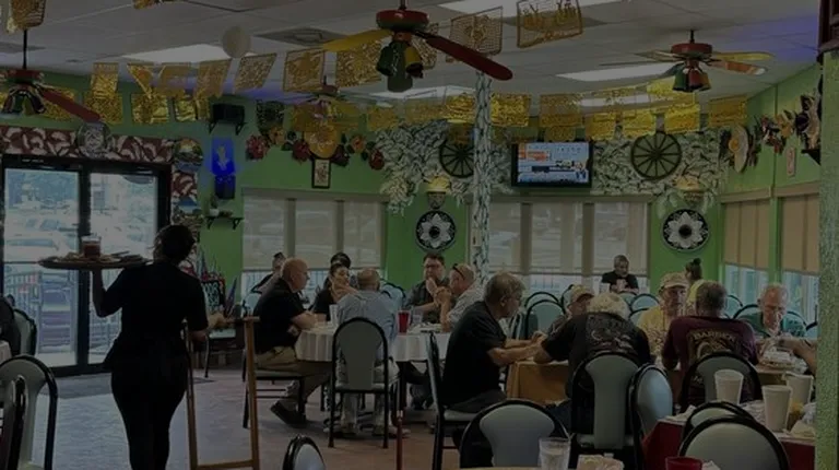 $8.754 oz marinated codfish fillet topped with chef's butter lime garlic sauce, three sauted Gulf shrimp, salad with avocado slices, frijoles, a la charra, and Spanish rice garnished with fruit slices, served with flour or corn tortillas.