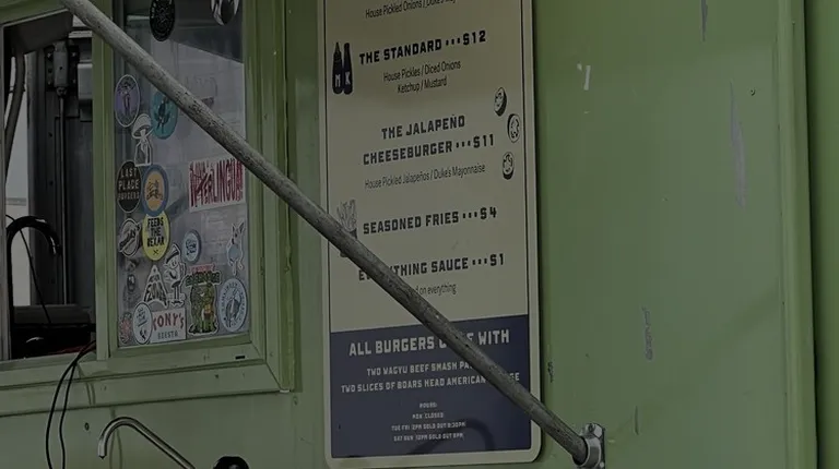 Service was simple, straightforward and kind. They use a texting feature to let you know when your order is ready for pickup. The ambiance was nice, but two noteworthy things: first, the location is a food truck that is attached to a brewery with indoor and outdoor seating; all outdoor seating is uncovered! I happened to be here on a day that was cool and overcast, so no problem. But a typical hot, Texas day would drive me inside for some AC. Secondly, directly across the street is a craft beer and BBQ spot that is playing music as loud as a Vegas night club! So if that's your vibe, then cool. Wasn't really mine...On to the food. Nice smash burger. I had the OG and the standard; both of which were cooked very good but could benefit a bit more from better toppings. There needed to be a bit more acidity to break up the meat and cheese. After awhile, it richness started to become overwhelming. There is a special sauce that you can purchase for $1 on the side and it broke up said richness; but, it is very garlic-forward and distracted from smash burger flavor profile.But if you're a huge garlic fan, you'll love it!All in all, I rated everything a solid and respectable 3.5 out of 5.Nice job!! Definitely not a Last Place burger or experience!
