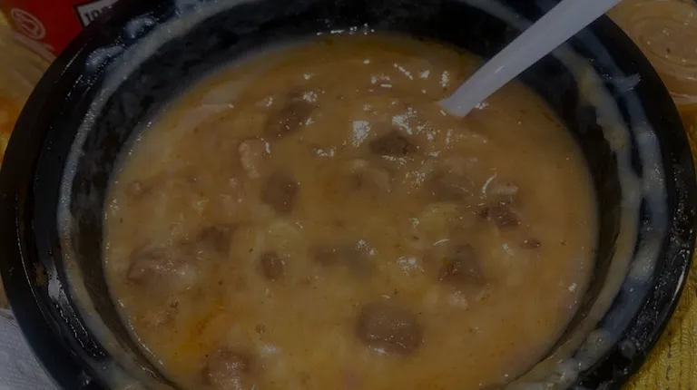a bowl of soup and a tortilla