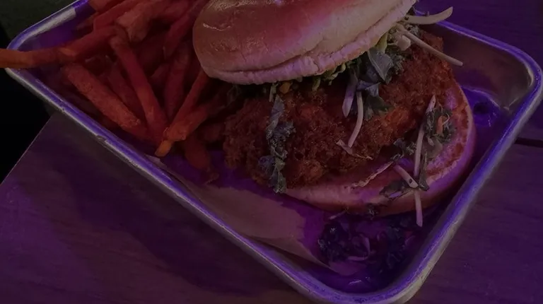 First time here was for a private birthday celebration. We were in the Whiskey Room which was nice, but hot! The lights in there were making us sweat. The cocktails are delicious, but our poor bartender didn't have the bar appropriately stocked so our poor gal had to go to the main bar for almost every drink. There was a p-trap pipe in the ceiling that was dripping, which was gross since we could only think it was for the bathroom. Speaking of bathrooms, there are not many 2 per each gender, so be prepared to wait in line.The cocktails are great, but the draft beer selection isn't great if you like craft- pretty mainstream stuff. My husband and I got a burger and hot chicken sandwich. They came out fast and were hot, fresh and delicious! The portions are definitely a good size, so be hungry!Overall, I wouldn't go out of my way to come back. It's hot, lines to the bathroom and the atmosphere is just okay.