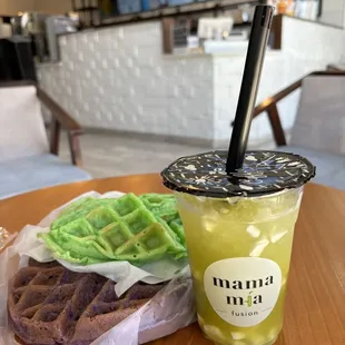 I tried a lavender milk tea with 50% sugar ($5). It is more like lavender milk, because I did not taste the tea. The sugar is connected to the syrup, so if you decrease the sugar, you also decrease the lavender flavor. The employees were kind and patient. Our order took about five minutes. There are a few small tables inside. The menu is pretty diverse! They had fruit teas, coffee, milk teas, and even desserts (like pandan waffles).