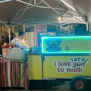I'm from California and I was craving tacos. So I got on here and this location mentioned having bomb ones. I would drive by there late at night during my trip to San Antonio and wow. THEY WERE BUSY! The line was long so I skipped out every night until I finally gave in! (: The stayed open until around 3am and I waited around 30 minutes for my tacos but they were worth and good. The wine from the three individuals that run that place were so nice and we started a conversation about how their day was going. I'm all for helping small businesses and this one to support. I enjoyed the vibe and atmosphere bc it's literally downtown.If you're not in a hurry and have time to wait please check these people out there a reason they're always busy BC THEY HAVE GREAT TACOS!