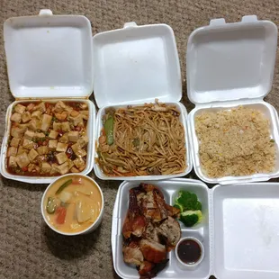 Ordered the pork fried rice and eggroll through DoorDash. I got the large portion for a $2 upcharge from the regular size (see picture) and it could feed 3-4 people, or just two if both are really hungry. It was good, not the best I have ever had but typical, with the classic ingredients and not the carrot and peas some places put.