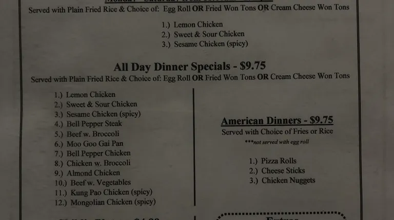 I had got the lemon chicken with an egg roll alongside wonton and egg drop soup, the wonton soup was definitely a top for me and the rice. The lemon chicken and egg roll were okay, but the egg drop soup tasted old. Will for sure go back for the wonton soup! Wish they weren't only to go.