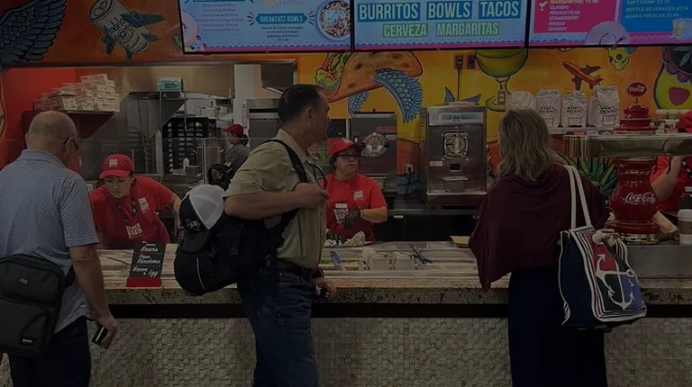 Got a pork bowl and a steak bowl with Mexican rice and cheese, and they were so good! The employee who took my order was really nice and patient (it was my first time trying this restaurant), so overall amazing service, and very smiley! Can't really say much about the ambiance, since it's an airport food scene, but it was really good! Food is done in front of you Chipotle-style, which I found great, and the quality of the meat was amazing. If you've got a while to wait at the airport and in the mood for some good food, I'd definitely recommend trying this place out.