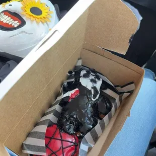 literally my favorite bakery ever, me and my family have been visiting them since they were a booth at the mall events and they are always so nice and friendly . i love the horror theme and i'm never disappointed with anything. the donuts are definitely a favorite of mine, especially the ghost face one. 10000/10 recommend checking it out:)