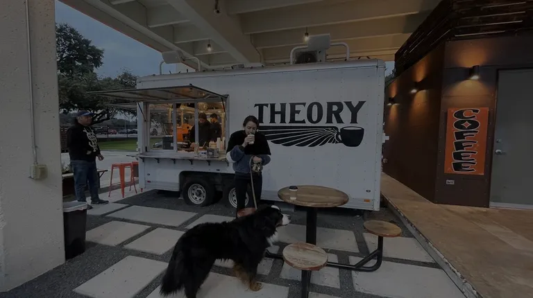 Easy no frills coffee truck with good cappucino. This truck is located at an old gas station repurposed into a food truck park - they have a mexican truck next to theory and a breakfast food truck across. I had a decaf cappuccino that was good, seems like their espresso are light roasted though so take it as you will. They use Mill king milk and have lactose free options, which I appreciate. It was busy on the weekend but they were quick about the orders. Lots of seating around the truck, overall pleasant place!