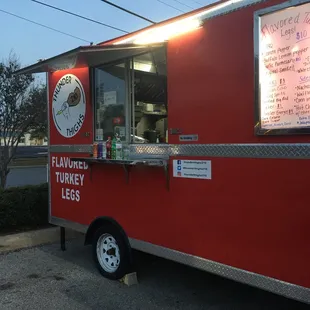 Great turkey legs! Stay hot for hours! I'm only giving 4 stars because the potato salad was not great. Can't decide if it was purchased at Walmart or HEB but definitely not homemade. Too bad because if they could do the fresh sides they would probably get a lot more business. I see now they have added mashed potatoes. It's a 1 or 2 man show and the truck doesn't look big enough to do any cooking but maybe it is, I can't tell. The turkey legs are worth it if you can get sides from another place. If I were them I would keep it simple to cold items but make them at home! Fresh cole slaw, potato salad, macaroni salad.......