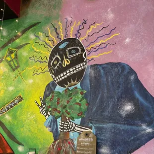 a skull with a cup of coffee
