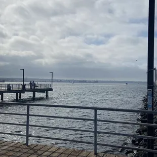 Hoped on the wrong Ferry from Coronado and ended up at San Diego Convention Center. Found Burgers, Bait & Beer and our crew had a great lunch off the pier. Rave reviews on the American Burgers! I had something called the Kraken. Beef sausage with grilled shrimp, caramelized onions and corn in a chipotle sauce. Drinks and meals are ordered in the small building. The food is cooked in an outside kitchen. Seating is outside or along the pier. Ambience is "dive bar hole in the wall" in the most positive sense. You can also rent a fishing rig for $20 dollars a day and fish off the pier. Restroom facilities are next door in the public park facilities.