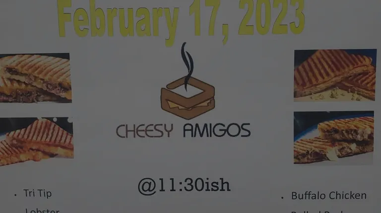 Lobster, Spicy Mac with Bacon, Buffalo Chicken, Pulled Pork, Tri-Tip, Three Cheese. Those were our choices when my employer hired Cheesy Amigos to cater an employee appreciation lunch.Lance showed up with two panini presses and sandwiches ready to go. He would cook three sandwiches at a time in each press. When they had good grill marks and the cheese was all gooey, he'd remove them and cut them into halves or fourths. I liked the idea of the fourths, it enabled us to sample multiple sandwiches. I was able to sample all of the offerings as there was plenty of leftovers for all of us to take home. The air fryer resurrected them perfectly at home.Here are the sandwiches and their descriptions. I put them in the order of which I liked them and what some of my coworkers thought.*(1) Lobster: Langostino lobster tails, Oaxaca cheddar and sharp cheddar served on French bread layered with chipotle aioliThe lobster was my favorite. I love lobster so it had an edge on the others coming in. The two sharp cheddars were a great compliment to the sweet buttery lobster meat. The chipotle aioli added a hint of spice and the French bread was the perfect vehicle. Excellent.*(2) Buff. Chick: Sliced Buffalo chicken marinated in Franks Red Hot sauce with blue cheese and 3 pepper cheddar cheese on jalapeño cheddar breadA few coworkers said it was too much blue cheese. Impossible I say!Spicy Frank's marinated chicken, 3-pepper cheddar and jalapeno bread provided the heat. Blue cheese cooled it down. It was perfectly blue cheesy! Excellent.*(3) Spice Mac: Creamy macaroni & cheese smothered with 3 pepper cheddar and crispy Applewood smoked bacon served on jalapeño cheddar breadVery clever paring mac 'n cheese with a grilled cheese sandwich. The bacon delivered! Excellent.*(3) Pulled Pork: Marinated pulled pork with tangy vinegar BBQ sauce topped with cheddar cheese on French breadTied for 3rd with Spice Mac. The pork was delicious, the BBQ sauce was very good as well. Excellent. Here's an idea: Combine the two! Spice Mac with BBQ Pulled Pork Sandwich!*(4) 3-Cheese: Blend of cheddar, provolone and mozzarella melted to perfection on French breadCheddar. Provolone. Mozzarella. That's all you really need to know. Excellent.*(5) Tri-Tip Bourbon marinated beef Tri Tip with steakhouse onion-aged cheddar and sharp cheddar cheese on French breadTo be fair, the Tri-Tip was #1 on a lot of coworker's lists. I thought it was really good. The beef was tender and cooked perfectly. I did find it a bit under-seasoned. I was in the minority. I heard one co-worker describe it as "Amazing!"While it may have been #5 on my list, it was still...excellent.Service from Lance was great. He was super friendly.This was a work event, but I would definitely entertain the idea of hiring Cheesy Amigos for a private event.