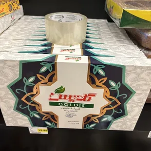 a stack of boxes of tea
