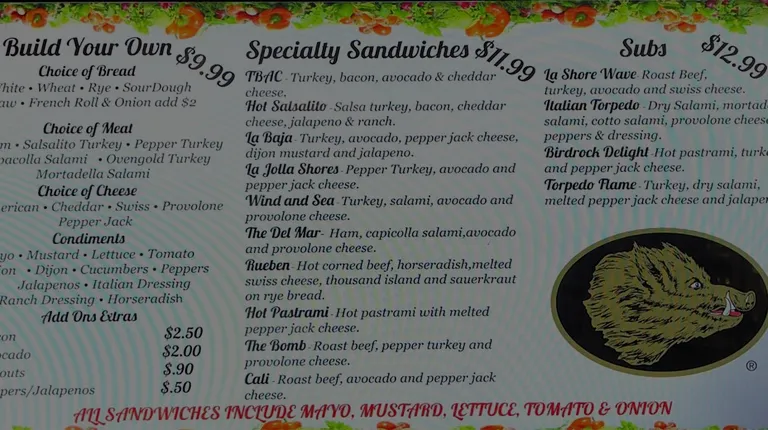 a menu for a sandwich