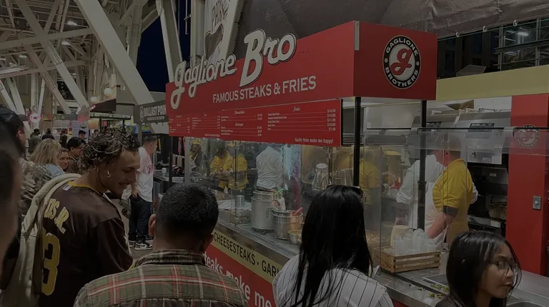 There's no way to escape the smell of garlic fries from Gaglione Brothers as you're entering the park from the Tony Gwynn Dr entrance. They are the first food vendor you see and no matter how many times I come to watch a game and think of eating other food, we HAVE to at least order some garlic fries. It's hands down my favorite comfort food at Petco Park. I've even visited their outside location and the fries at the park just seem more seasoned and definitely more piled on with garlic. Sooo good!4 stars though because I think the cheesesteaks are ok, not the best and this line seems to move unbelievably slower than others.