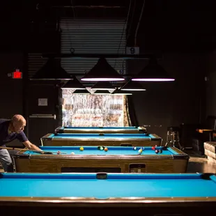 Awesome place to play pool & grab a couple drinks! Not only are there a huge selection of pool tables but the selection for beer/ other drinks itself is large. It's more of a serve yourself by going up to the bar but once getting there everyone is attentive & helpful when deciding what beer you're wanting to try out. The place gets packed but with said, there is plenty of room to hangout and still grab a table or two. Coming back, they've shown consistency with the well kept place, great staff, & other selections!