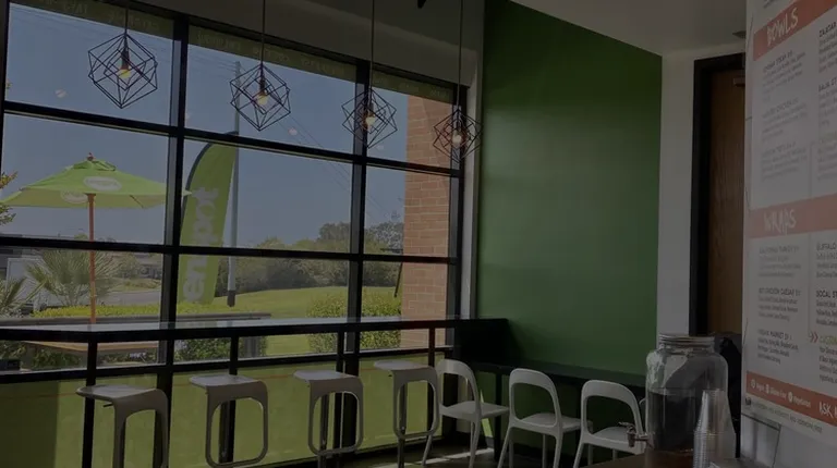 This is a nice little cafe inside a commercial building filled with offices/commercial surrounding areas. It's right off the freeway on the 1st floor.They have salads, wraps, drinks, and snacks. Their food and drink items are more on the healthier side, but they're surprisingly pretty good! My son got a steak wrap that came with yellow rice, which he said he liked. I got the BLT caesar wrap with sauce on the side. It was pretty much a salad inside a wrap, which I enjoyed. The girl wrapping it did a great job since I thought she overfilled it and the wrap would burst, but it didn't.There's limited seating inside, but they do have a nice outside patio with plenty of tables. It's nice and quiet and there's not much traffic with cars or people since it is inside a nice commercial area.