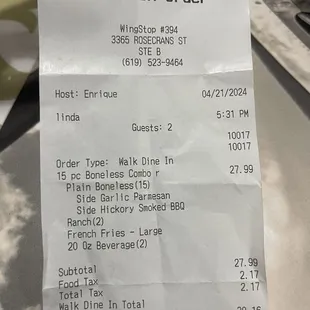 Decided to give wing stop another try & yet again it reminded me of why I never go there. I ordered the 15 piece boneless combo with fries & it was $30!!!! It was totally not worth it. The chicken is super salty & way too crispy. We waited about 30 mins and the staff weren't really friendly when I went up to ask if my order had been called since it's hard to hear if you sit in the back tables. I gave it 2 stars because the fries were good & I liked the soda machine with the touch screen with different options of drinks.