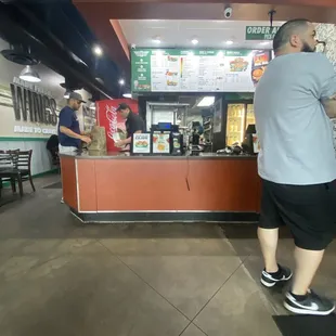 Walked in at 6:40pm with One person in line. The guy in front didn't get his order taken until 7:00pm. During those 20 minutes the cashier was talking to two employees who were already off the clock, I didn't know till afterward when the two ladies shouted with no etiquete to their coworkers "thank you for helping even though we did everything". This comment was a direct reflection of this establishment. Dirty dinning room with tables full of trash, trash cans overfilling to the floor, and the kitchen was very messy. By 7:15pm I still had not got my order taken and left the establishment. 35 minutes and still no order rung in, I can only imagine their expedite time. There was no leadership in the establishment and it showed. As someone in management this experience was a catastrophe I can only use when trying new hires moving forward.