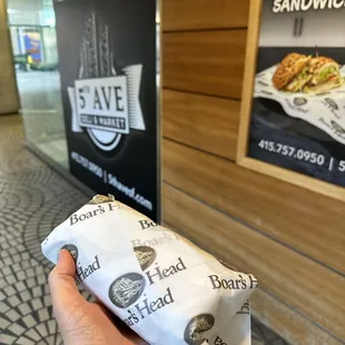 Embarcadero Center Gem: Unwrapping the Delicious Secret of 5th Avenue Deli & MarketI was looking for something new to try when I got hungry, so I asked my colleague for a recommendation. She suggested 5th Avenue Deli & Market, a small, hidden gem tucked away in the Embarcadero Center near the corner of Clay and Drumm streets.They offer a large selection of sandwiches, non-alcoholic drinks, and chips to accompany their creations. Since I'm not a picky eater, I asked the friendly cashier what their most popular sandwich was. Without hesitation, he declared, "SanFranPsycho!"This sandwich features honey turkey, bacon, Gouda cheese, garlic butter, pesto, and Cajun mayo, all piled high on your choice of bread. I went with sourdough, gutted out and toasted with everything. While 5th Avenue has no indoor seating available, there are benches outside in the Embarcadero Center. I took it back to the office, and with the first bite, I was in love!The sandwich was perfect - the bread was fresh and perfectly toasted, the flavors exploded in my mouth, and it was incredibly filling. I'm officially a fan! If you work nearby and have a sandwich craving, check out 5th Avenue Deli & Market. This is one sandwich experience you won't regret!