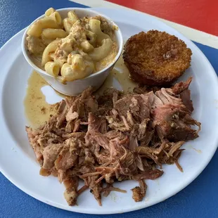 Choose any 2 meats and 1 side dish and 1 cornbread, serves 1 to 2 people.