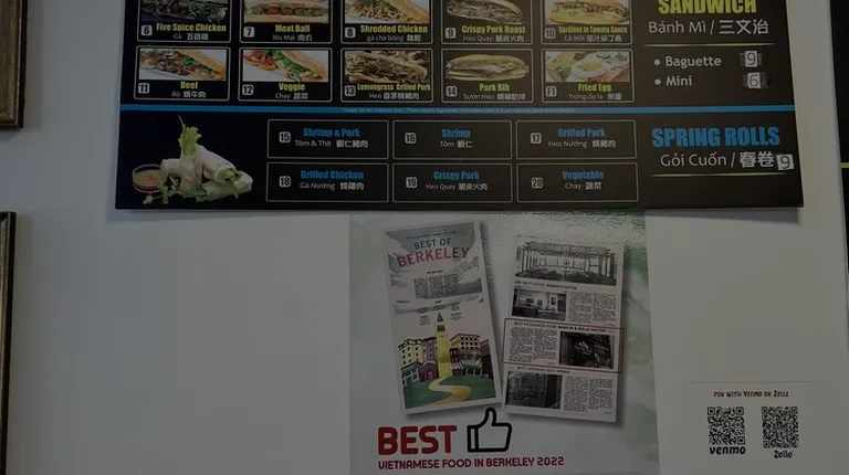 This location's bread is made fresh, and the owner takes pride in his work. The freshly made bread really makes the sandwich stand out. It is easy to order because they have a touch screen to order what you like, making things move faster. The friendly service you get from them is great and welcoming. It is a Small World location, and they have a few seats inside and out. But banh mi are to-go sandwiches.