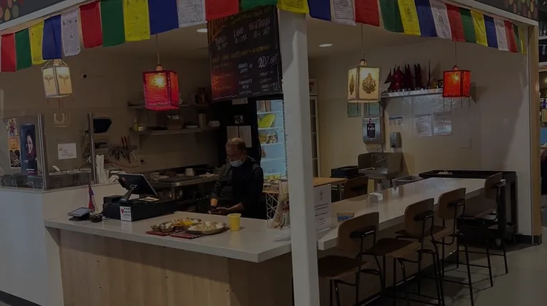 Delicious food Nepalese cuisine with Momos, hasty curry and dumplings although it is a little pricey, the portions are very hearty and the food is very tasty. Although the food is not freshly made in front of you, it is in fact, very tasty watch for the spice Level. They have vegetarian options.