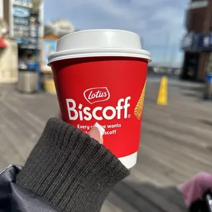 The only place that I saw for coffee at Pier 39. Thankfully, I'm a major fan of Biscoff! Of course I ordered the Biscoff latte. You order inside and then pick up at the counter outside. Each order comes with a free Biscoff cookie. The cookie butter was probably at the bottom because it didn't taste very strong at the beginning it was sweeter at the end. No seating inside.