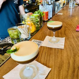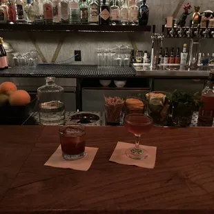 a cocktail and a drink on a table