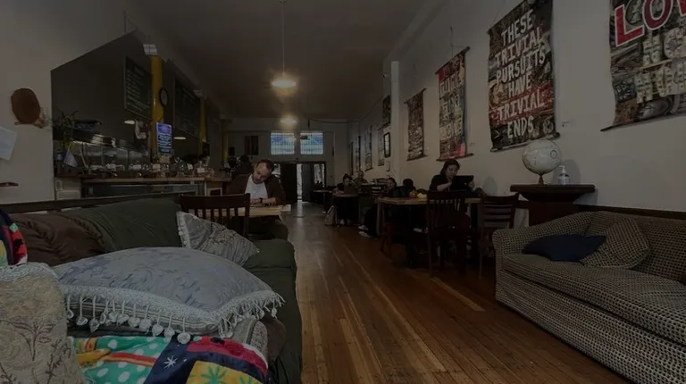 Cozy, cushy, old-school comfort zone.Great food, great atmosphere, great drinks, and great people.This isn't like most coffee shops or cafes in San Francisco! It almost closed down but the community rallied to save it, and the city is better for it. There's history here and it feels like home--something some of the newer, flashier cafes lack. Yummy croque monsieur and other sandwiches and baked goods. Very comfy seating.