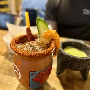 Super Shrimp Quesadilla, Quesabirria, Aguas frescas tamarindo