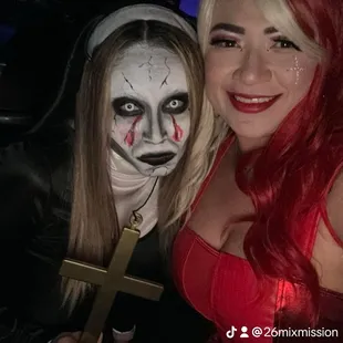 two people dressed up in costumes