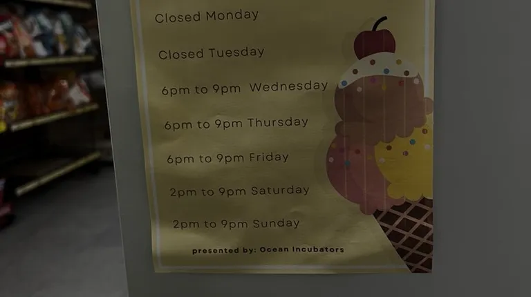 Flavors of ice cream at the ice cream cart inside Cool Guys Market