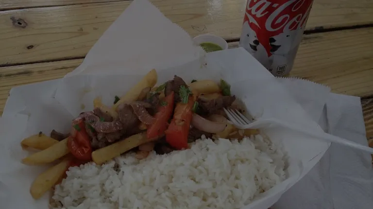 Obviously not the best Peruvian food I've ever had, but adequate for a food truck. Was pleased to see salchi papa, since that is a great street food. Their lomo saltado was fine too, considering there aren't many other relatively cheap options around. Really appreciate how their fries are crispy no matter what dish they're served in.Salchi Papa: A guilty pleasure. A heap of French Fries with slices of deep fried hot dog. Except theirs was a tad more sausage-like and cut thin diagonally, so was a bit tastier. Lots of sauces (ketchup, mustard, mayo). There was some wilted shredded lettuce too, which was novel for me, and I wasn't a big fan. Definitely could have done without. But still a good snack.Lomo Saltado: My go to Peruvian dish. Theirs was pretty solid. Had a good ratio of veggies (tomatoes, onions, fries) to meat. The meat itself had a good sear, though it was a tad dry. Loved the soy sauce and cilantro marinade, though could have used some more loose sauce on the bottom. The rice was regular old white rice and a bit too large a portion compared to everything else. Don't miss getting the green sauce and orange sauce, they mitigate some of the dryness.