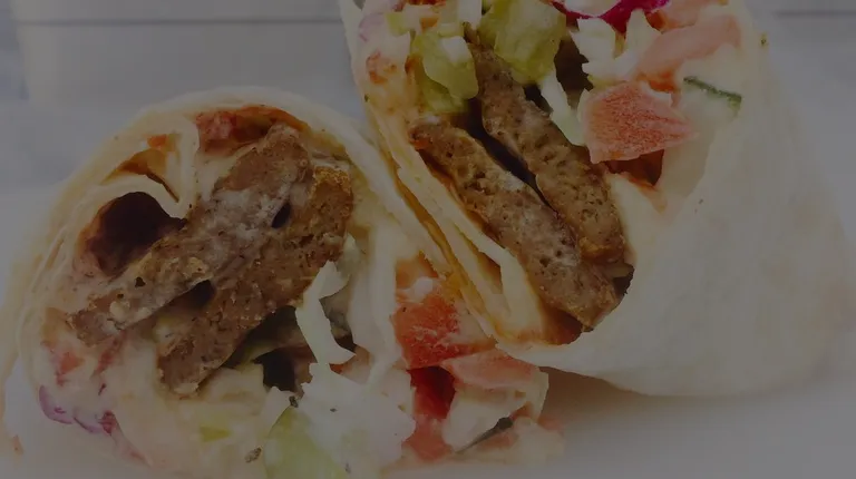 Gyro - with hummus, slaw, tomato, cucumber, pickles, and crema sauce