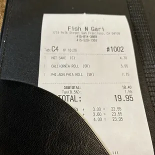 We ordered the tuna poke appetizer, Philadelphia roll, California roll, spicy tuna roll, screaming roll (spicy yellow tail), and miso soup for takeout. The total came right below $50 which was a really good price for the amount of food we received. There were a few misses as the miso soup was oddly sweet and the California roll had too much mayo. I probably wouldn't get the appetizers again and would supplement with hand rolls or nigiri. The star of the show was the screaming roll and the spicy tuna rolls. Everything was packed very well and it took very little time to pick up our order. I will be ordering from there again and trying some of the other options.