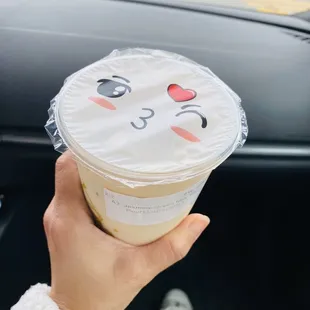After having lunch, decided to get some boba tea (is a must stop) . Ordered on the kiosk, after the order was submitted in the server made the drinks quickly. We had the lemon kumquat green tea with basil seed, refreshing!!!! For this excessive heat wave. Wanted to order some snacks since it looks like they had many options but was too full :( next time! Oh and the seal on the cup was super cute! Couldn't help it! Haha