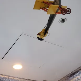a bunch of toy cars hanging from the ceiling